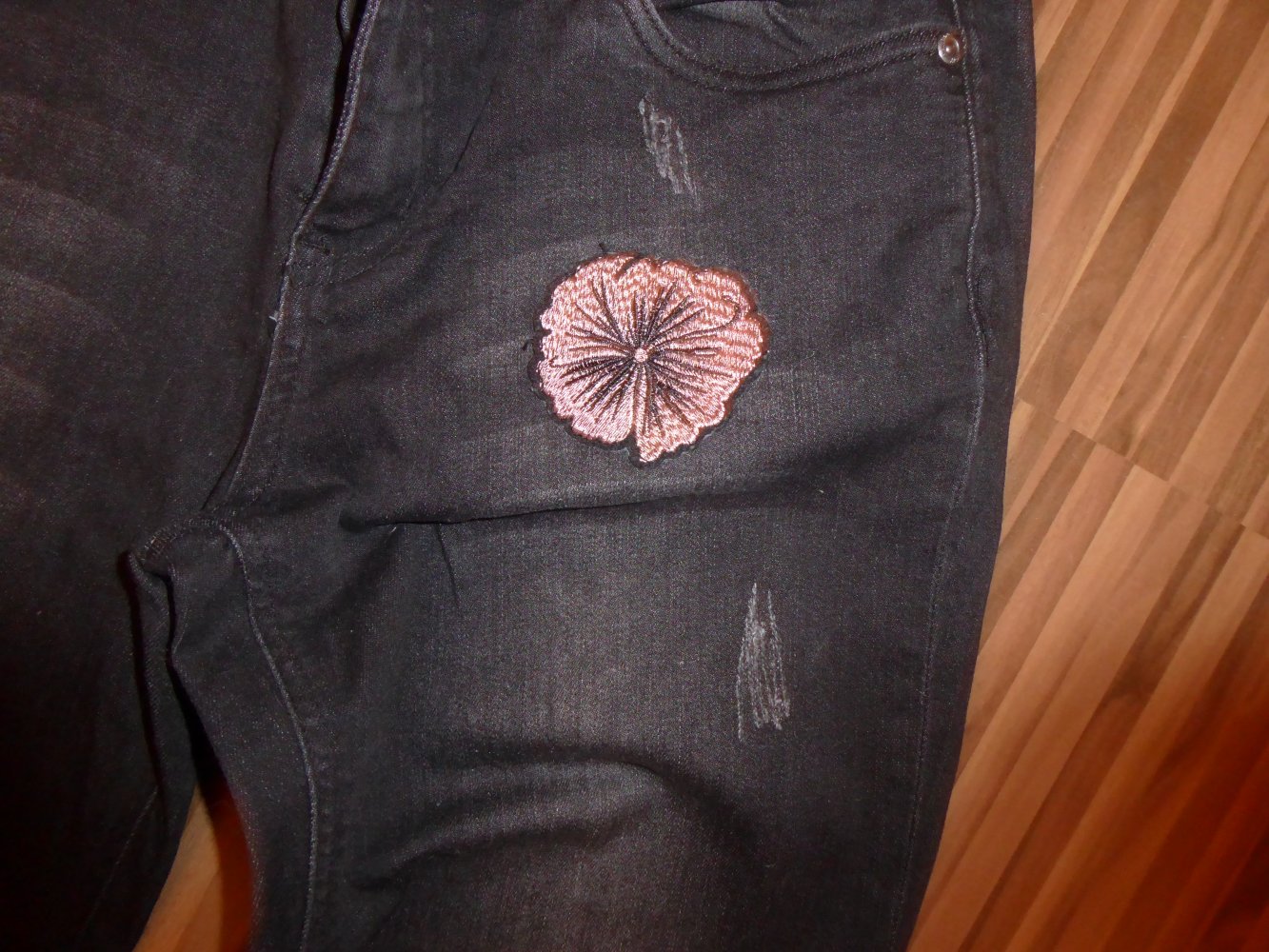 Damen Röhre Jeans NEU antharzit schwarz 40 M RAINBOW Blüten Stickerei Destoyed