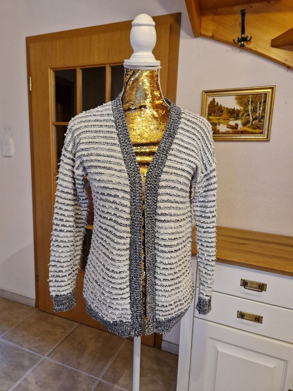 Damen Jacke Strick mit Pailletten Gr.S in Grau von Street One NW