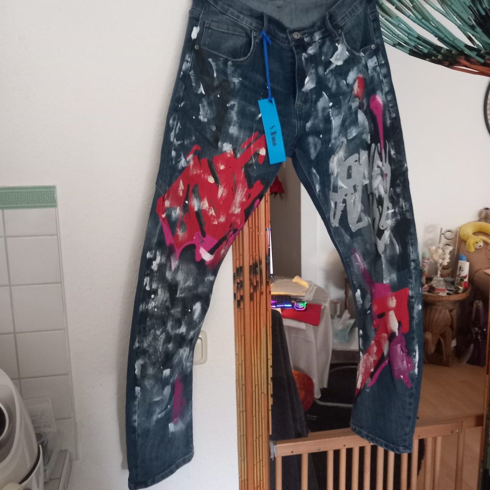 Biete diese hammermäßige Jeans, die schon ausgefallen ist, mit diesen Farbklecksen. Es handelt sich bei dieser Jeans um Boutique Ware und das Modelabel Sexy Woman, ist bekannt für die Qualität und ausgefallene Outfits. Hier noch einige Maßangaben: