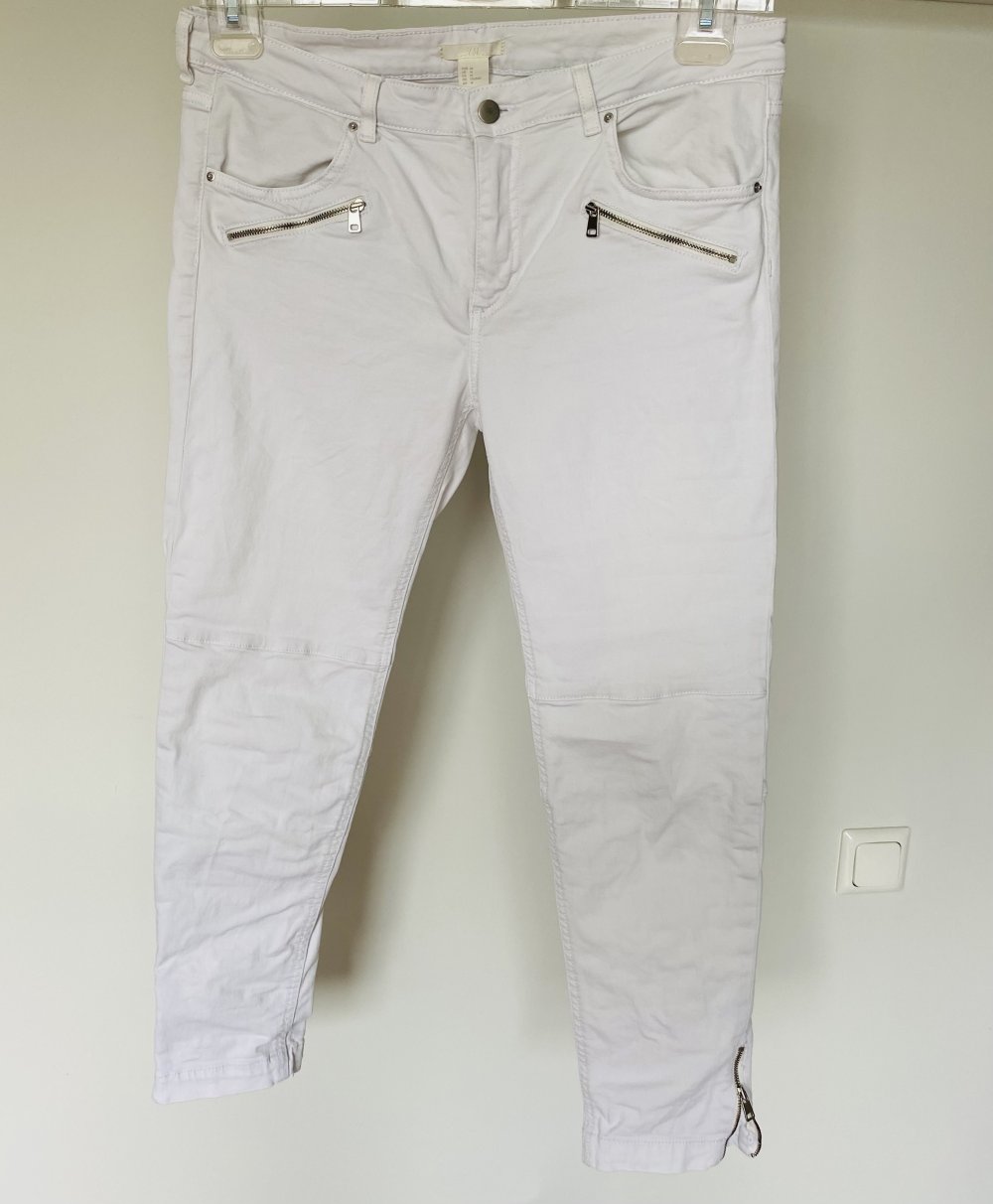 H&M, Jeans, weiß, Stretch, Bikerstyle, Reißverschlüsse, Gr. 44