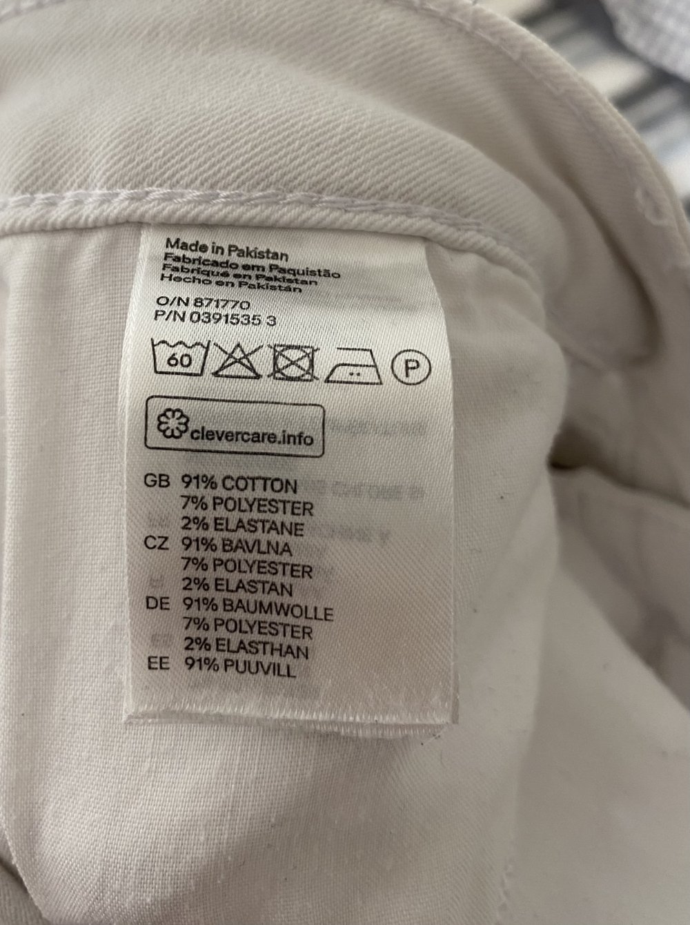 91% Baumwolle und 2% Elasthan