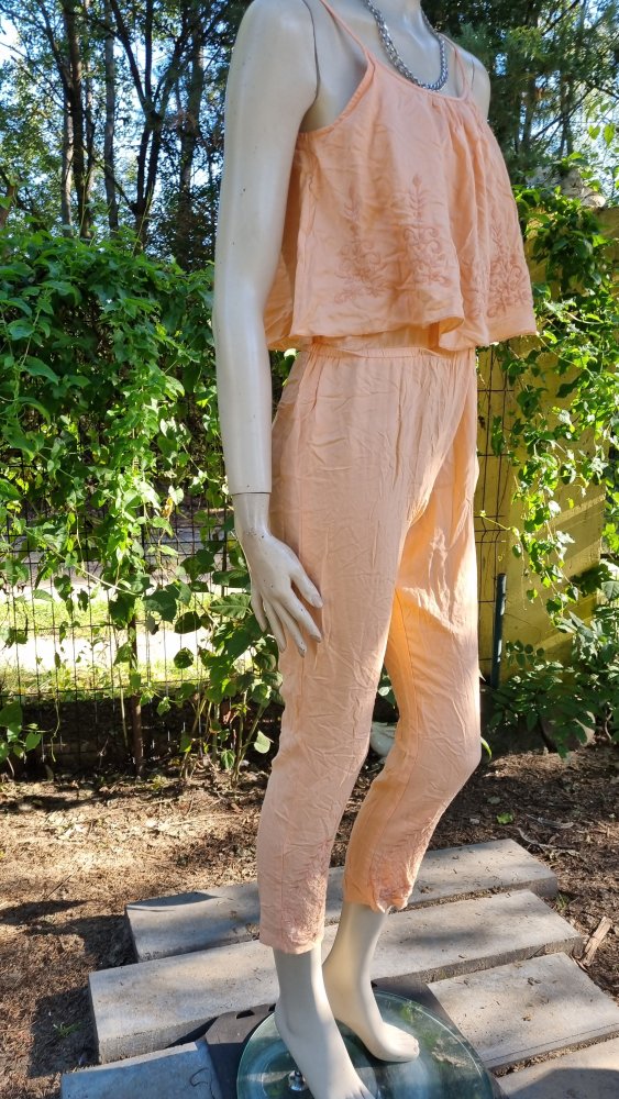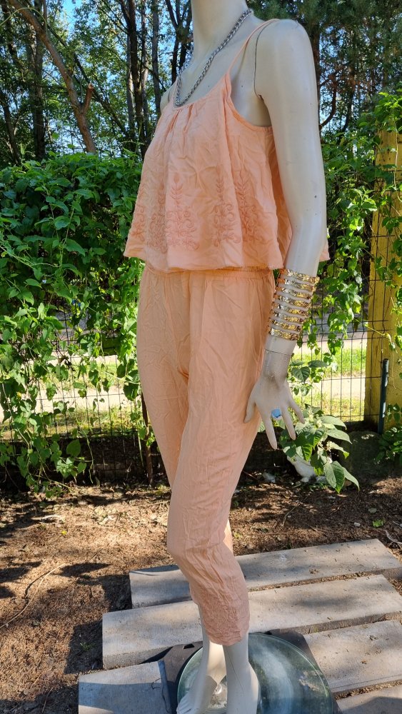 von Achsel zu Achsel ca 41 cm. Taille ca 38 cm. komplette Laenge ab Schulter ca 131 cm. Innenbeinlaenge ca 69 cm.