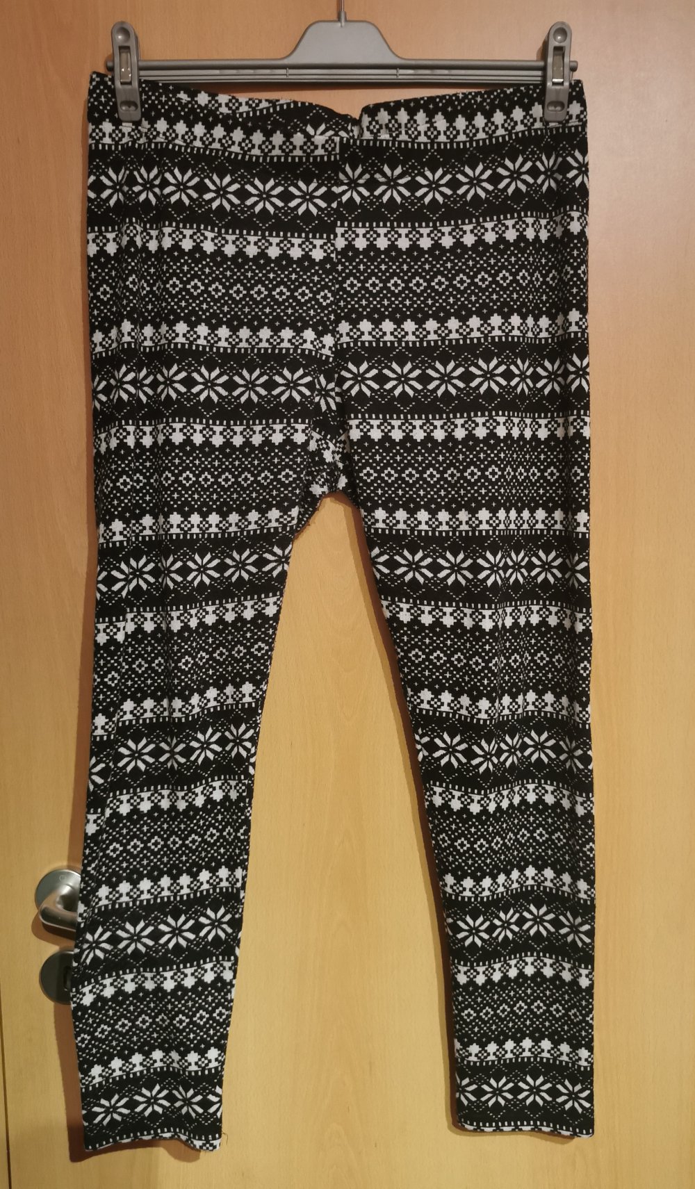 Ich biete diese Leggings in der Größe 44 an. Sie ist schwarz weiß und ist mit "winterlichen" Motiven versehen. Die Leggings ist etwas dicker vom Stoff her als üblich. Im Schrittbereich ist Pilling vorhanden.