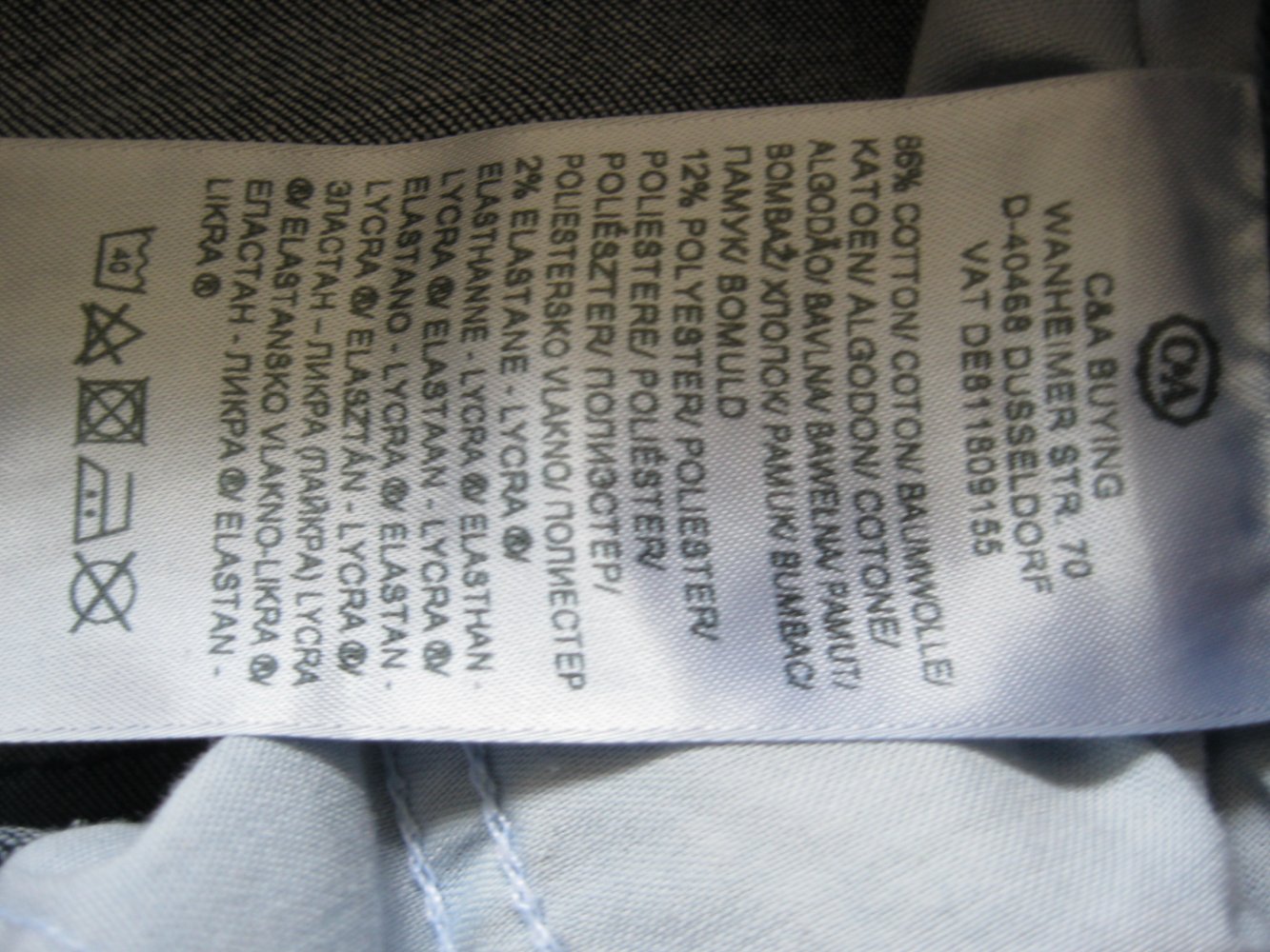 Material: 86% Baumwolle, 12% Polyester, 2% Elastan