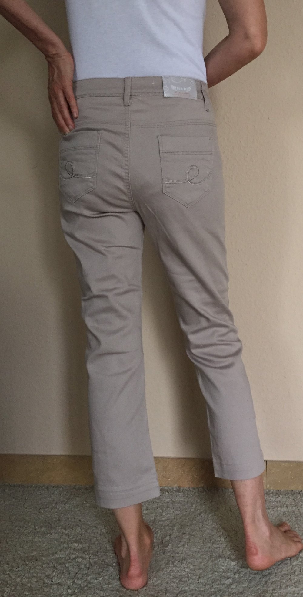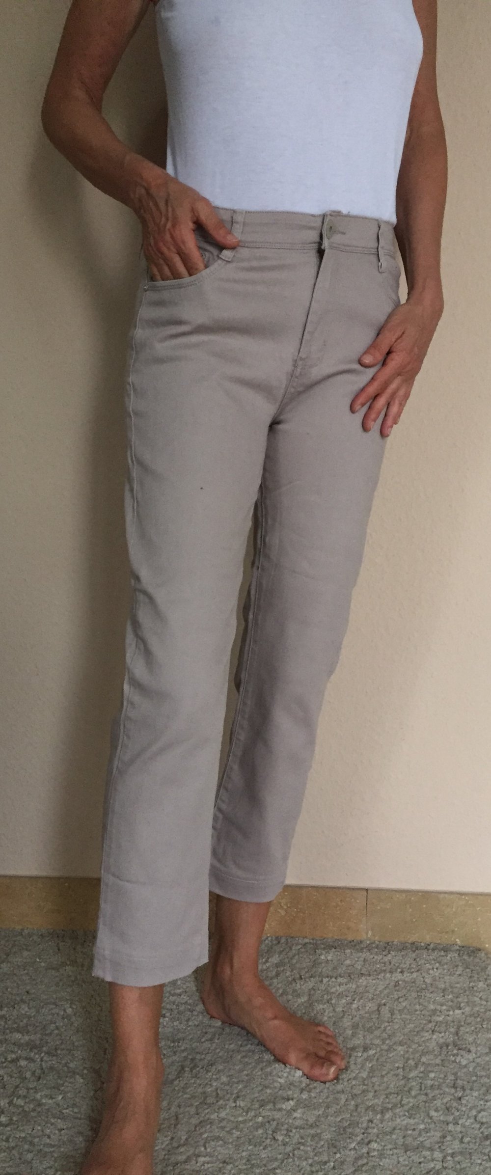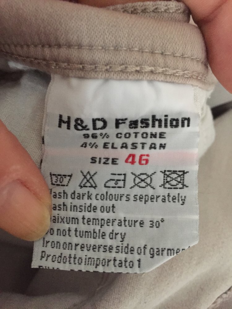 Die Hosen sind mit einer italienischen Gr.46 ausgezeichnet, entsprechen also einer dt.Gr.40, Model hat sehr lange Beine insofern ist Hose normal Lang