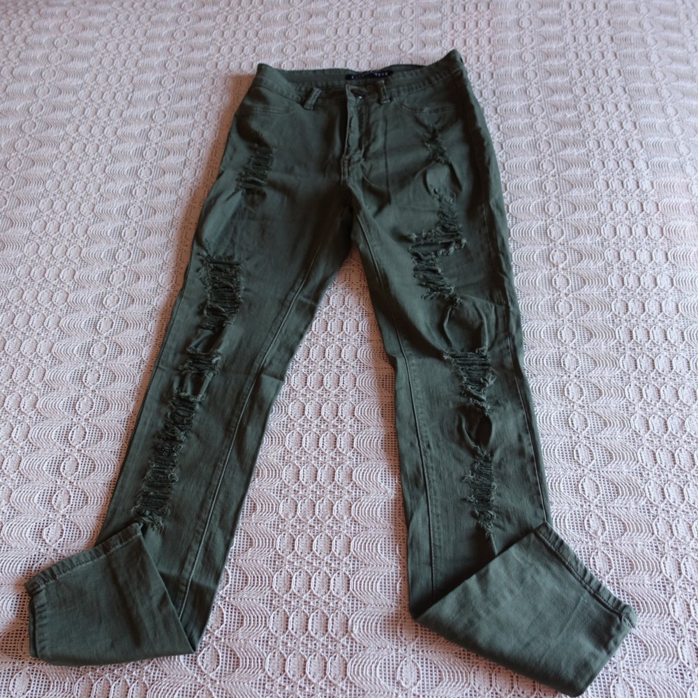 Jeans, Hose, Fashion Nova, Skinny, Röhrenjeans, Gr. 7 (W27), oliv