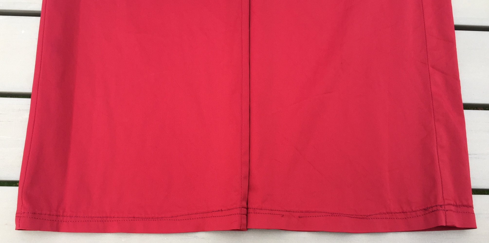 In der Länge wurde sie mal gekürzt, leider sind die Saumnähte dabei recht unregelmäßig genäht worden, siehe Detailfoto.