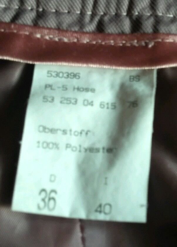 Maße: Bundweite ca. 37,5 cm, Länge ca. 100 cm, Fußweite unten ca. 21 cm