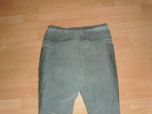 Biete hier eine tolle Hose von Tredy in Größe 46 an. Sie ist zwar mit Gr. 48 angegeben, aber sie fällt etwas kleiner aus. Die Hose ist hellgrau ( so wie auf Foto 2 und 3) und besteht aus einem strechigen Material, leider wurde der Waschenzettel entfernt. Sie hat einen bequemen, elastische Hosenbund und an beiden Seiten befindet sich eine dunklere Applikation. Im Kniebereich befindet sich eine leichte Raffung und die unteren Hosenbeine sind seitlich etwas dunkler abgesetzt. Auf diesem dunklen Einsatz befinden sich florale Motive und kleine silberne Schmucksteinchen. Die Hose wurde nur kurz getragen da sie doch zu eng war.