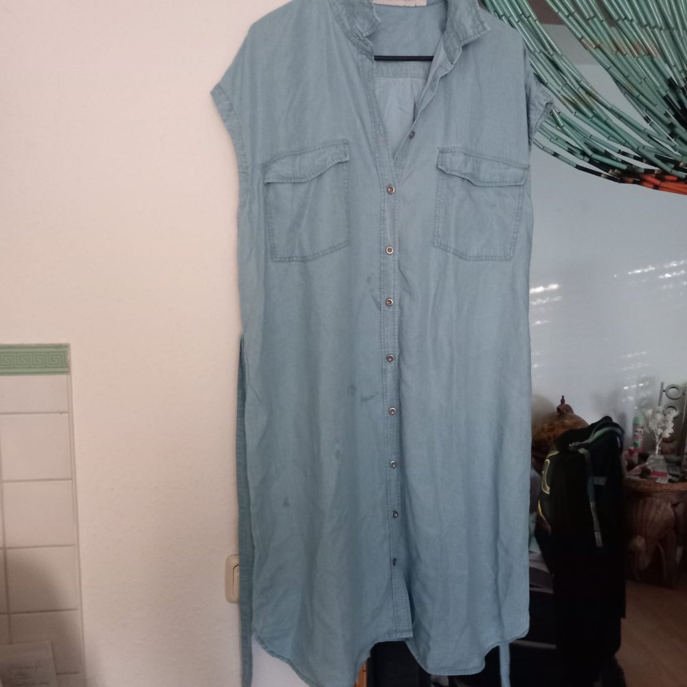 Biete dieses neuwertige Jeans Kleid, mit Binde Gürtel und Druck Knopfleiste. Hier noch einige Maßangaben: