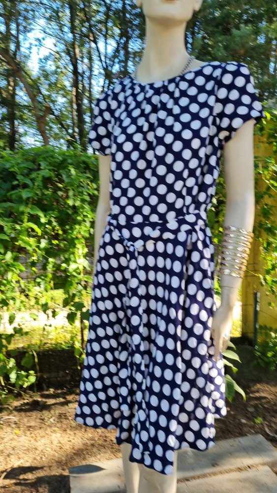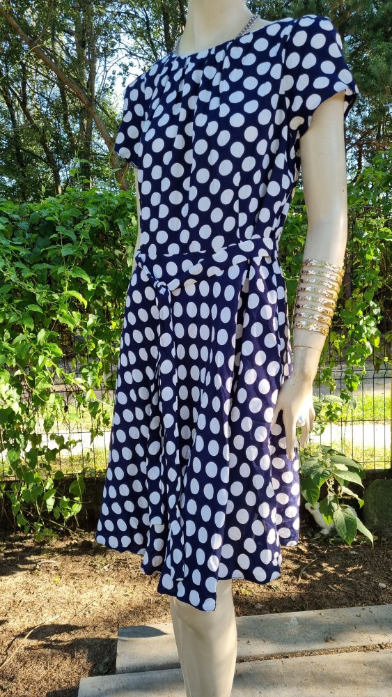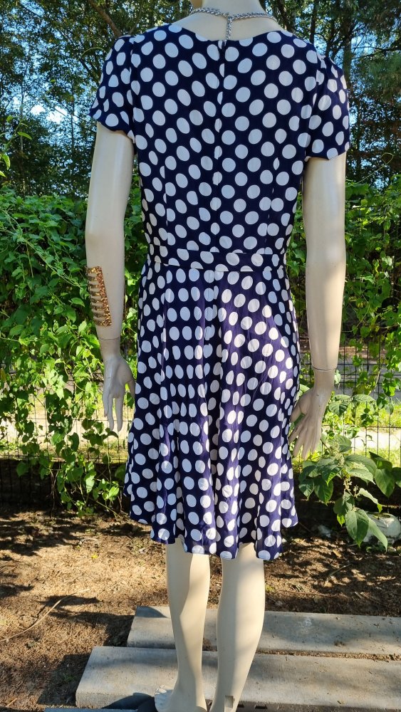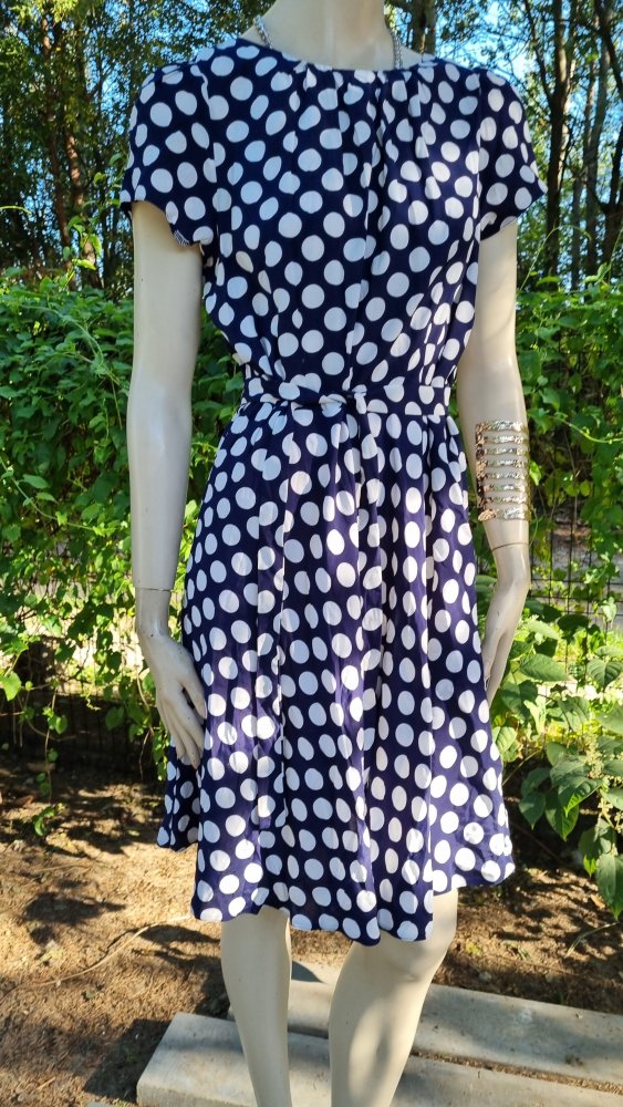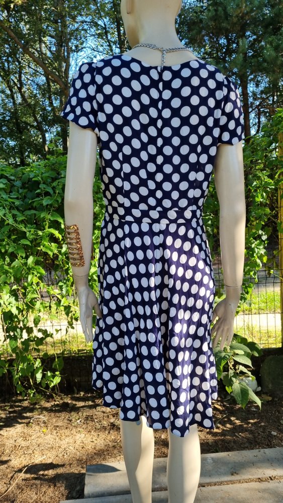 Wunderschönes dunkelblaues Vintage Kleid mit weißen Punkten! vintage, pin up, punkte, gepunktet, polkadot, marineblau, figurbetont, plussize, curvy, schick, elegant, hochzeit, anlass, cocktaildress, sailordress