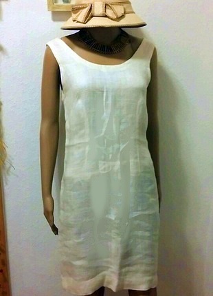 Tolles Kleid aus Leine für dem Sommer im Creme Farbe