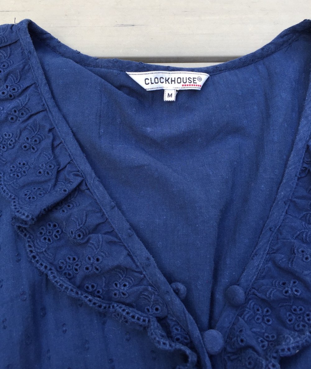 Süßes Sommerkleidchen mit Lochstickerei-Muster und Rüschen von Clockhouse (C&A) in Größe M.
