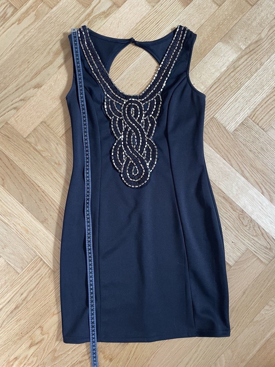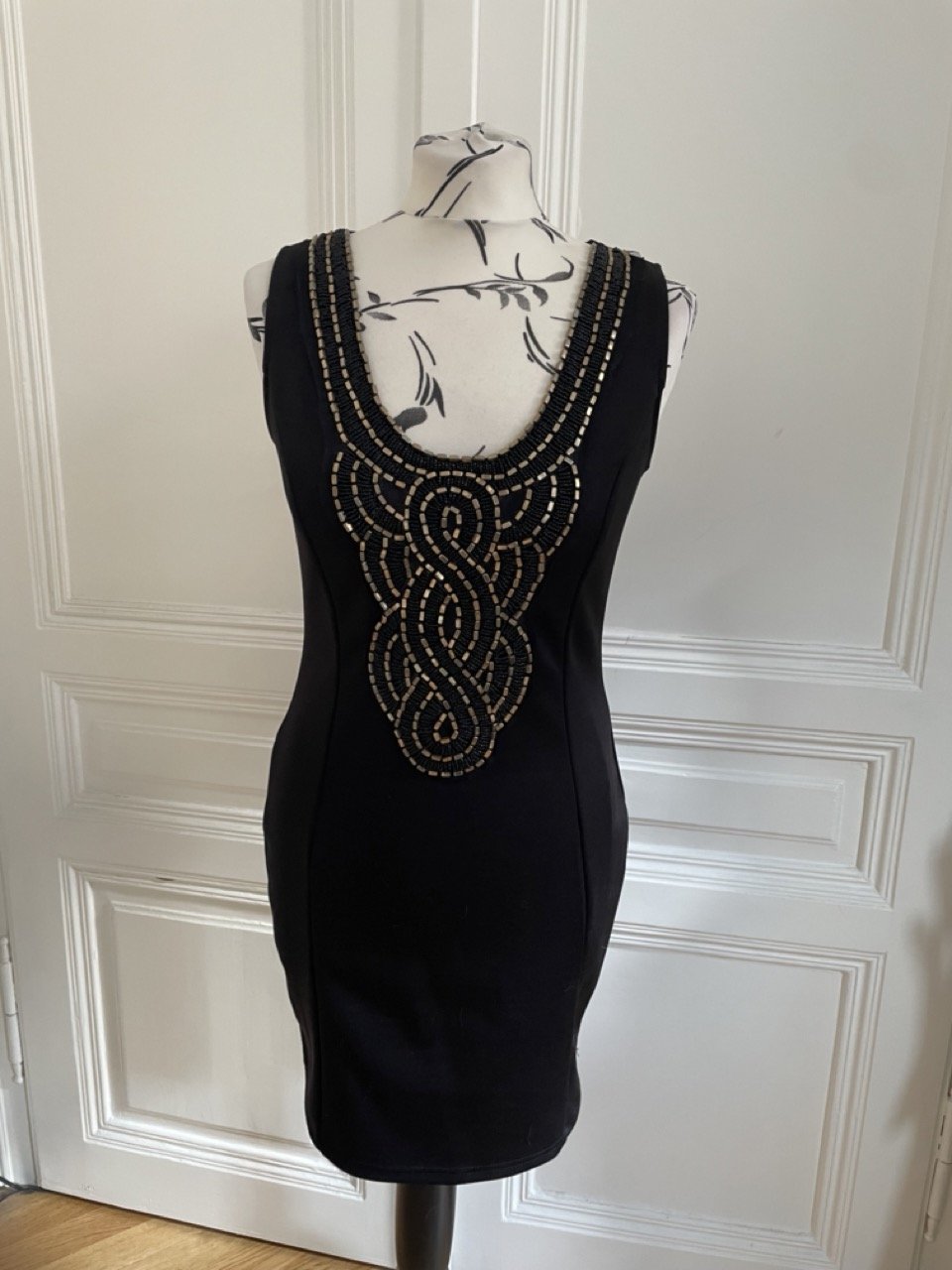 Bodycon Dress mit Golddetails und Rückenausschnitt von Danity. Der Stoff ist fest und schmiegt sich gut an.