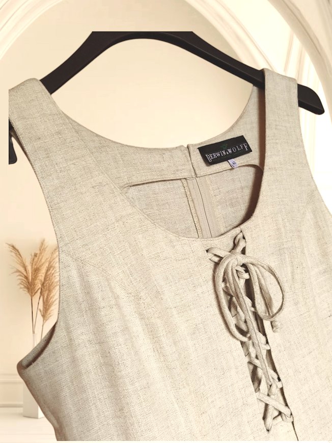 40% Baumwolle, 40% Modal, 20% Leinen, wadenlang, Reißverschluss hinten, an der Taille in Falten gelegt, 2 seitliche eingenähte Taschen, waschbar bei 30 Grad