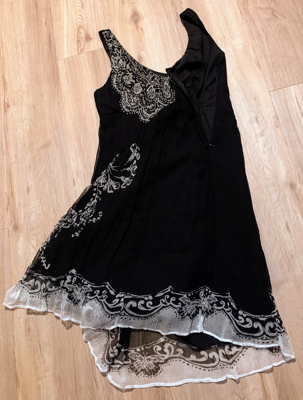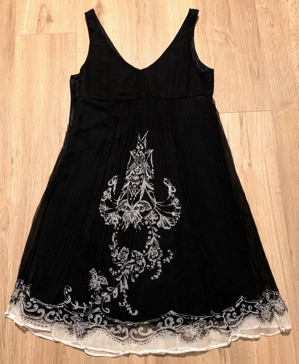Damen Kleid Sommer mit Trägern Empire-Stil Gr.S Schwarz/Creme gemustert Derhy