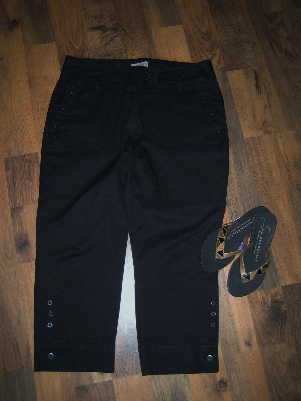 Tiefschwarze Caprihose mit Eingrifftaschen und Gürtelschlaufen - so gut wie nicht getragen - hervorragender Zustand !