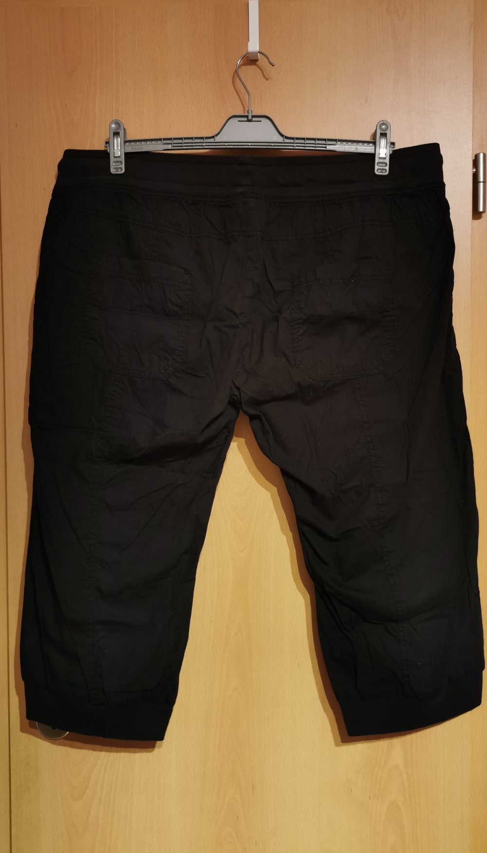 Ich biete dieses 3er Set Hosen an. Das Set besteht aus einer grauen Hose mit schwarzem Muster, aus einer Hose die türkis ist und aus einer schwarzen Hose. Die Hosen haben die Größe 50 und sind von Gina Benotti. Sie haben ein Gummibund mit Kordelzug, zwei Eingriffs- und zwei Gesäßtaschen und auch einen Gummibund am Beinende. Die schwarze Hose ist ungetragen und wurde nur gewaschen. Die graue Hose wurde getragen, ist aber in einem sehr gutem Zustand. Die türkisene Hose wurde auch getragen, hat an der einen Eingriffstasche eine Verfärbung sowie an der einen Gesäßtasche eine weiße Verfärbung. Ansonsten ist sie auch in einem sehr gutem Zustand.