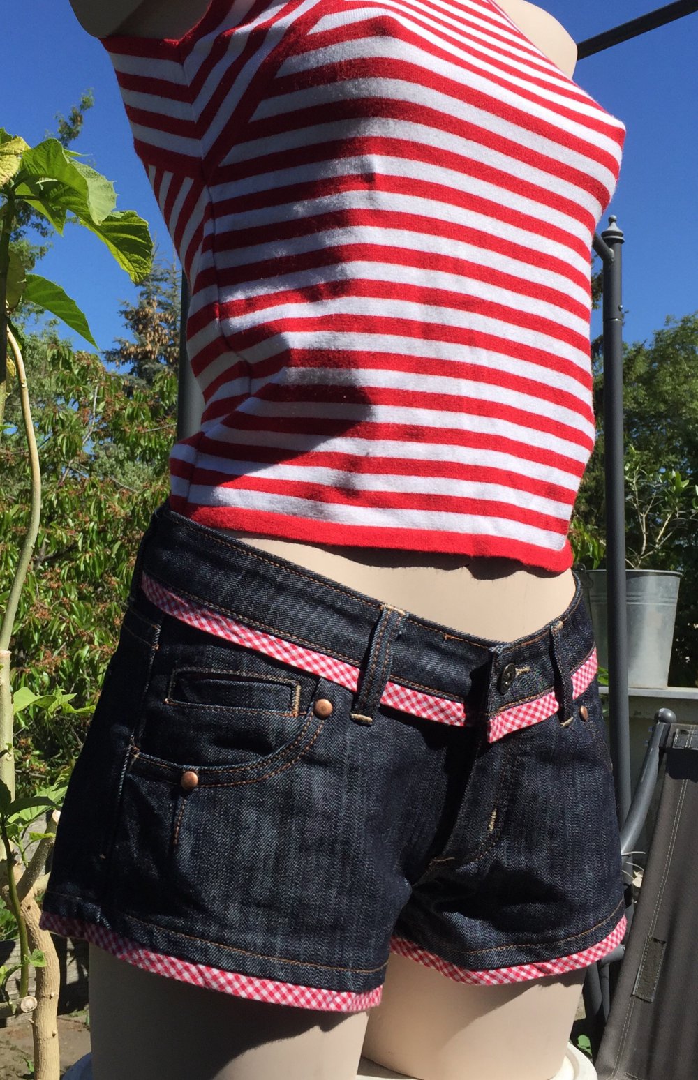 Detailverliebte Hotpants mit Vichykaro Paspeln von Guess in Größe 28.