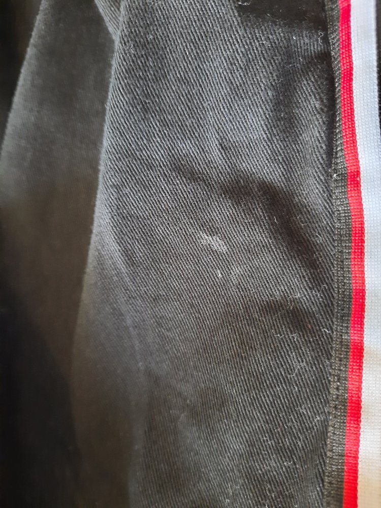 Oft getragen. Fusselt sehr stark. Fleck auf der linken Seite, siehe Bild.
