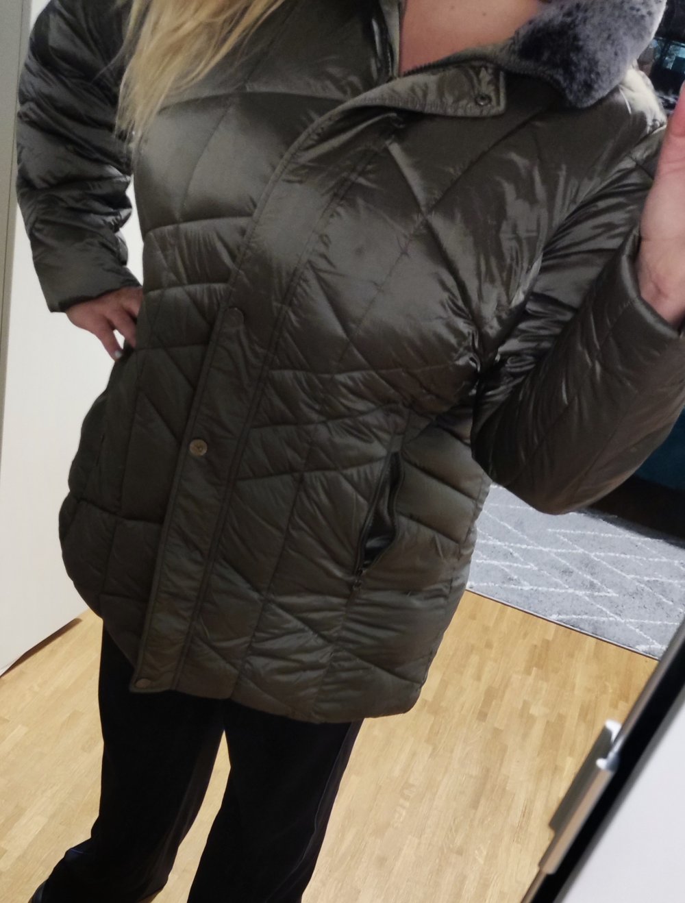 Grau brauner Steppmantel von Kirsten, mit abnehmbaren Kragen mit Kunstpelz, mit seitlichen Taschen
