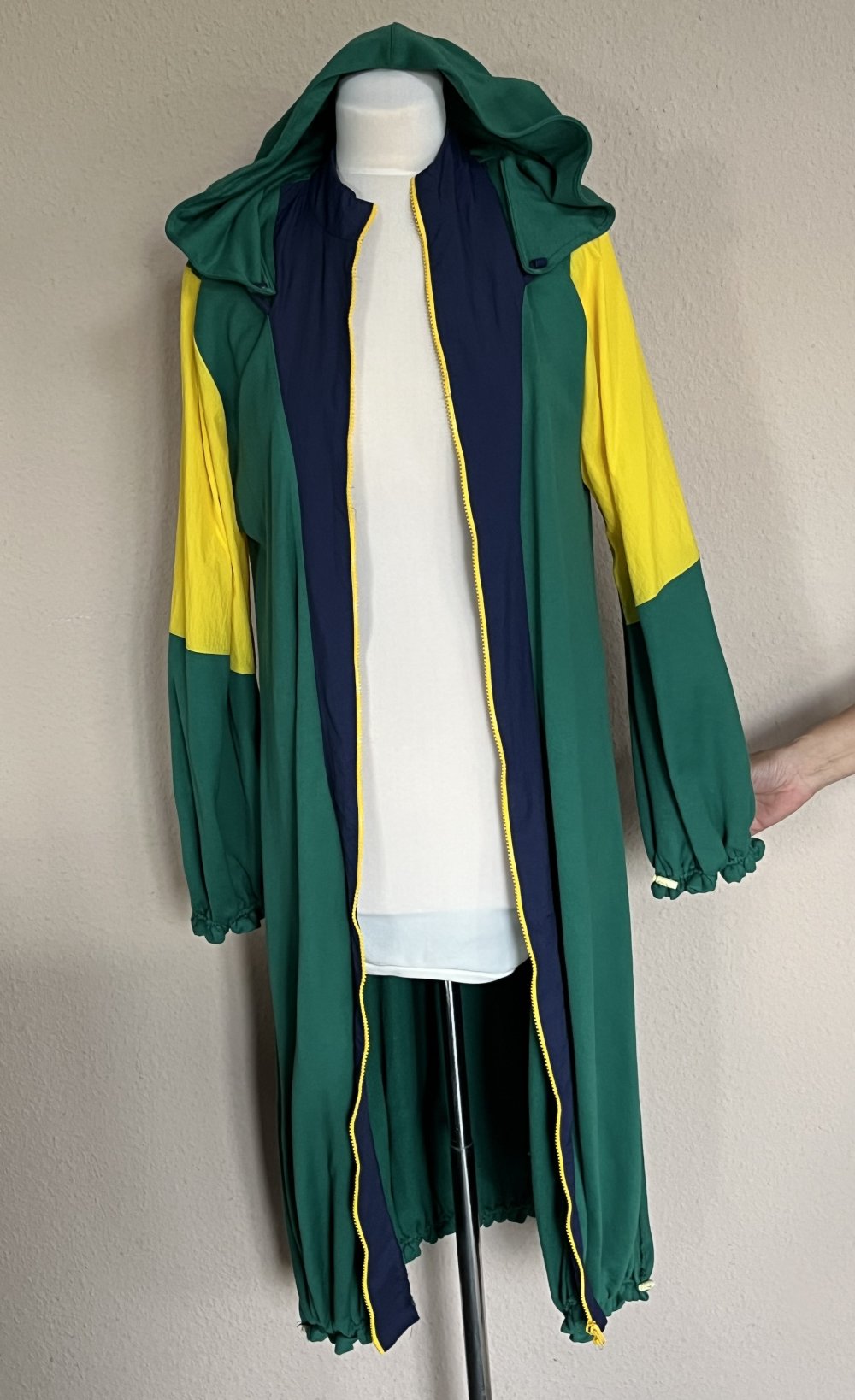 Saum raffbar, Ärmel auch. Der Mantel ist mit einer Gr.XS ausgezeichnet, entspricht aber eher einer Gr.S
