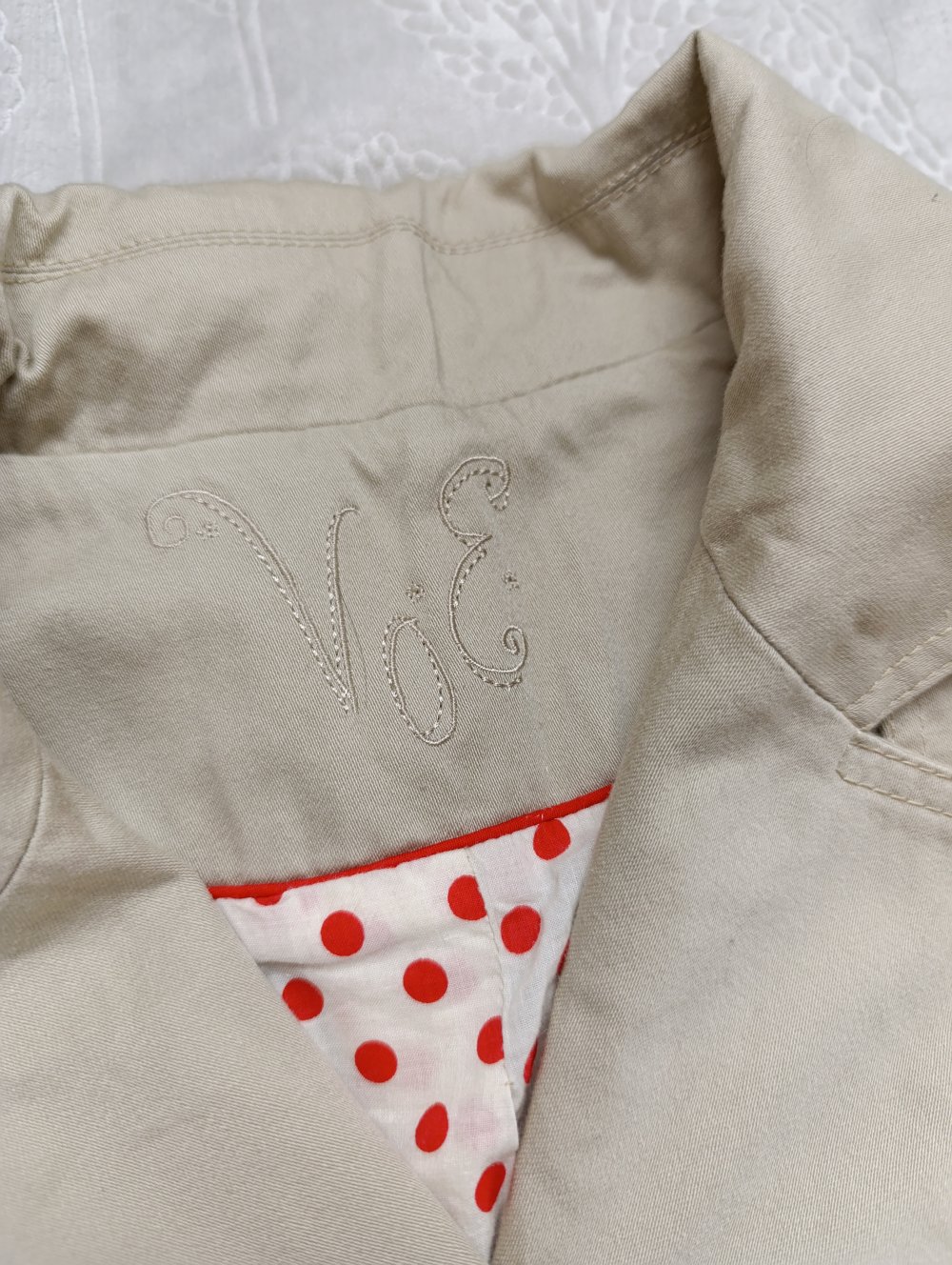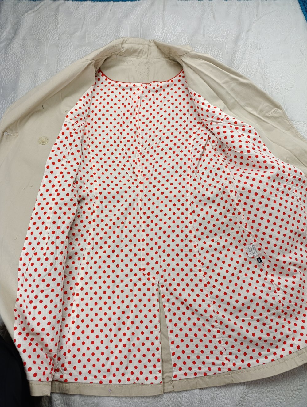Innenfutter: Eine Überraschung erwartet Sie im Inneren – ein auffälliges und effektvolles Futter mit großen roten Punkten (Polka Dots), das dem Mantel einen spielerischen, individuellen Touch verleiht.