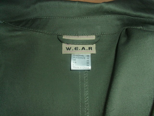 Biete hier eine schöne Jacke von Casual Wear in Größe 46 an. Sie ist mit Gr. 48 angegeben, aber sie fällt kleiner aus und passt mit Gr. 46, gebe unten noch die Maße an. Die Jacke ist schlicht khaki und besteht aus 96% Baumwolle und 4% Elasthan. Sie wird vorn mit Knöpfen geschlossen. Außerdem hat die Jacke zwei größere Taschen mit Knöpfen und zwei kleine Brusttaschen. Die Jacke ist für die wärmere Frühlingszeit und Sommerzeit geeignet. Sie ist ungetragen und hat noch ein Tütchen mit 2 Ersatzknöpfen. Sie hing nur im Schrank in der Hoffnung dass sie doch noch mal passt, aber nun kann sich jemand anderes dran erfreuen.