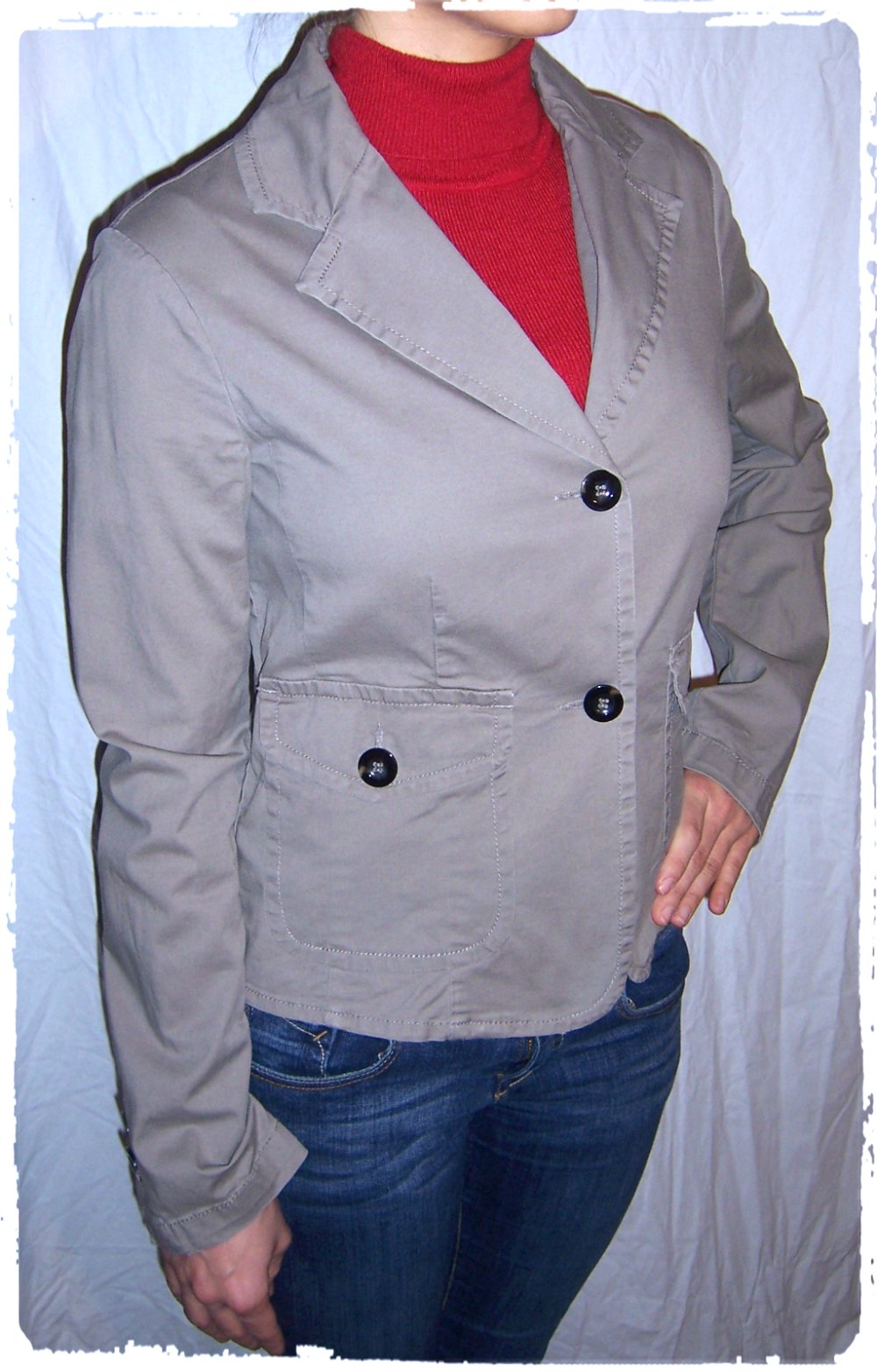Lediglich an der rechten Schulter ist eine kleine Abrieb-/Pillingstelle erkennbar (siehe letztes Bild).