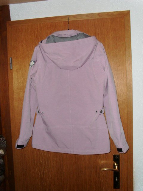 Biete hier ein schicke Softshelljacke von G.I.G.A. DX by Killtec in Größe 38 an. Sie ist flieder-rosa, ist wind- und wasserabweisend und hat vorn einen durchgängigen Reißverschluss, welcher unter einer knöpfbaren Blende liegt. Außerdem befinden sich vorn zwei Taschen mit Reißverschlüssen und eine Brusttasche mit Reißverschluss. In Taillenhöhe hat sie verstellbare Riegel. Die Ärmelbündchen sind per Riegel und Klettverschluss verstellbar und auf dem linken Ärmel befindet sich ein Emblem. Die Kapuze ist abnehmbar und sie ist mit einem grauen netzartigem Stoff versehen. Die Jacke kann vorn ganz hoch geschlossen werden. Der untere Bund ist mit einem verstellbarem Tunneldurchzug versehen.