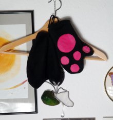 Handschuhe Handmade Pfoten Kitty Katzenpfoten schwarz rosa Fleece Fleecehandschuhe Kawaii Lolita Cosplay