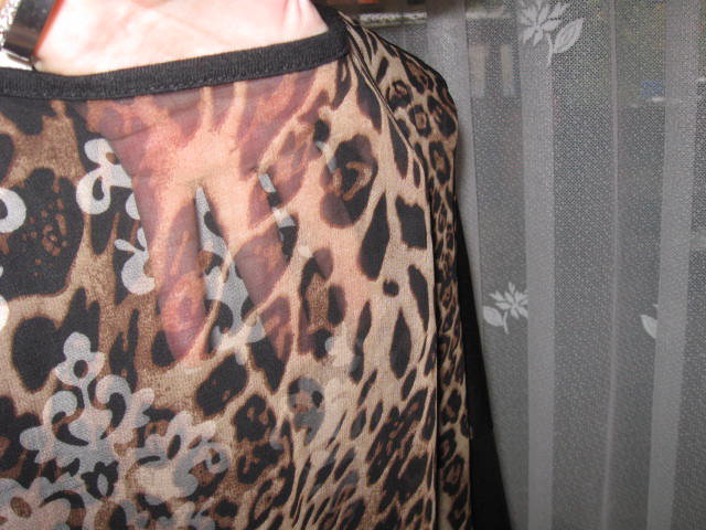 Biete ein neues Longsleeve. Es besitzt im Rückenbereich ein Chiffon Leopardenmuster & Fledermausärmel. Dieses Teilchen ist einfach mal raffiniert & sehr sexy geschnitten. Ich schätze es handelt sich um die Gr. L/XL. Hier einige Maßangaben: