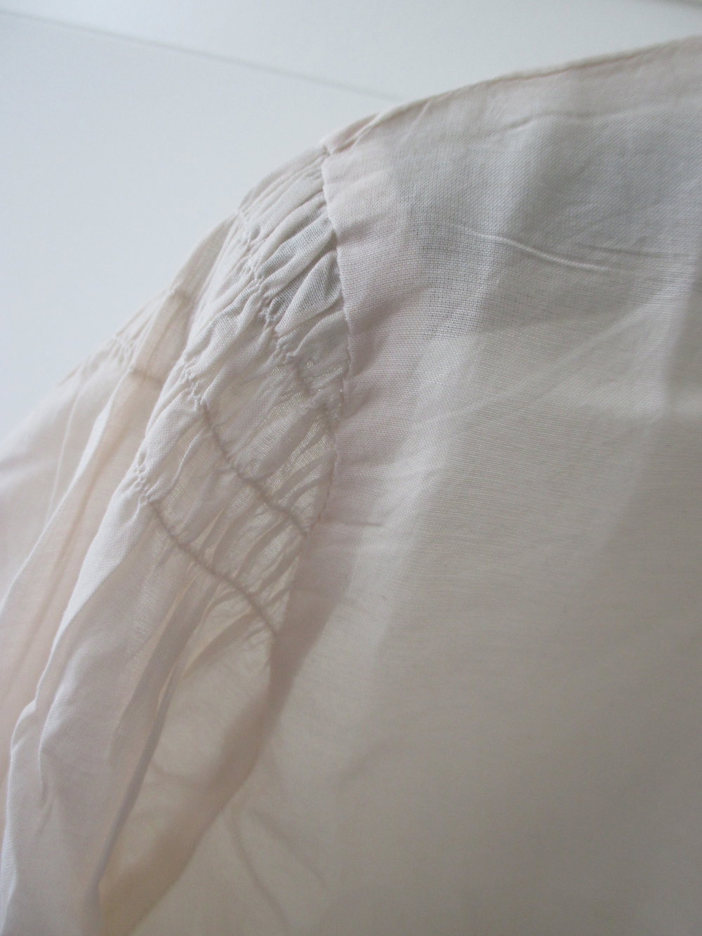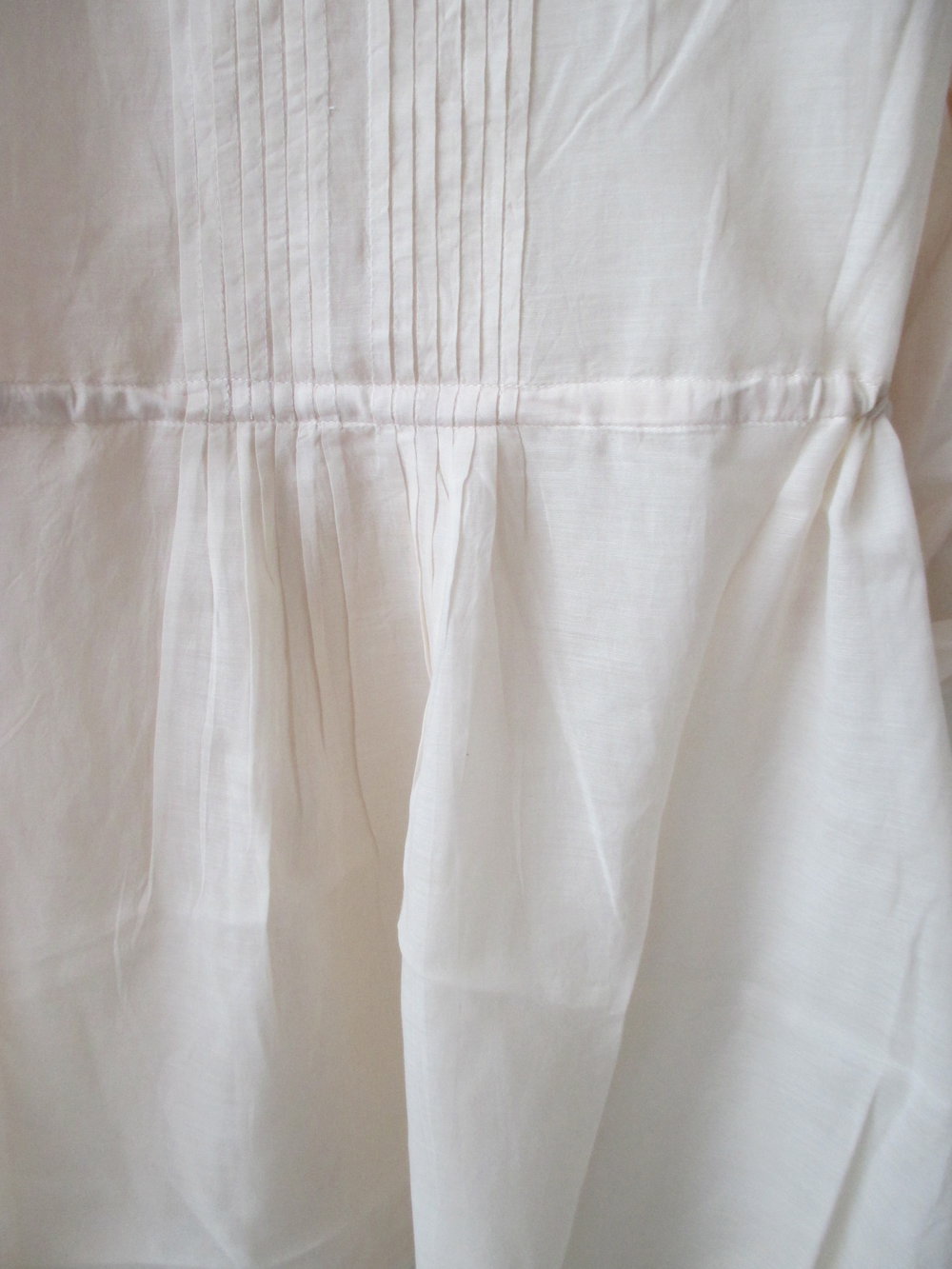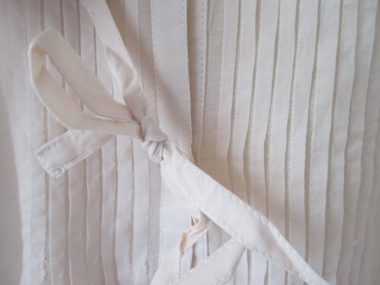 Biesen und Schleife vorderseitig, Baby Doll Schnitt, 3 / 4 lange Ärmel , die hoch geknöpft werden können.