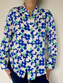 Someday, Bluse, neuwertig, langarm, Viskose, weiß/blau/ grün, Gr. 38