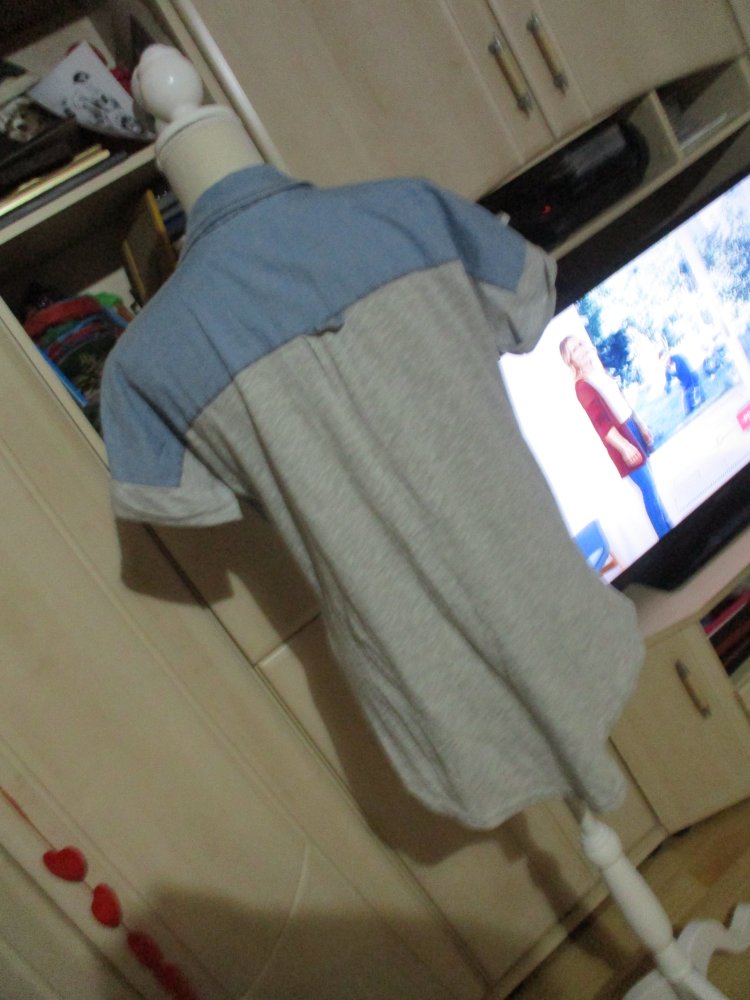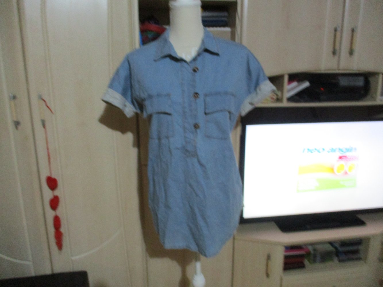 sportliche bluse/hemd,vorne weicher blauer jeansstoff und hinten weicher grauer shirtstoff.sehr gut erhaltene getragene bluse,leichtes peeling.brusttasche.vorne zur hälfte zum knöpfen.100 % baumwolle,mega locker und bequem.grösse 46,grössenschild fehlt.