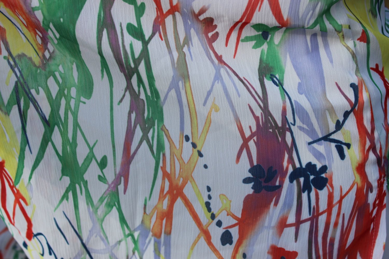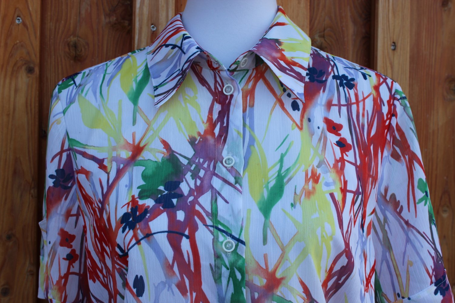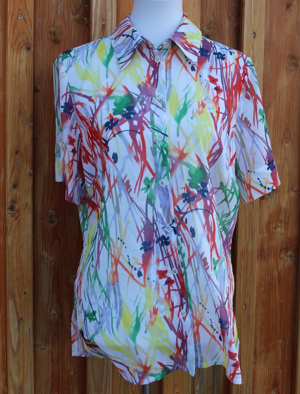 #truevintage #vintagebluse #bunt #sommerbluse #aquarell #streifen #pinselstriche #blumen #abstrakt #froehlich #farbenfroh