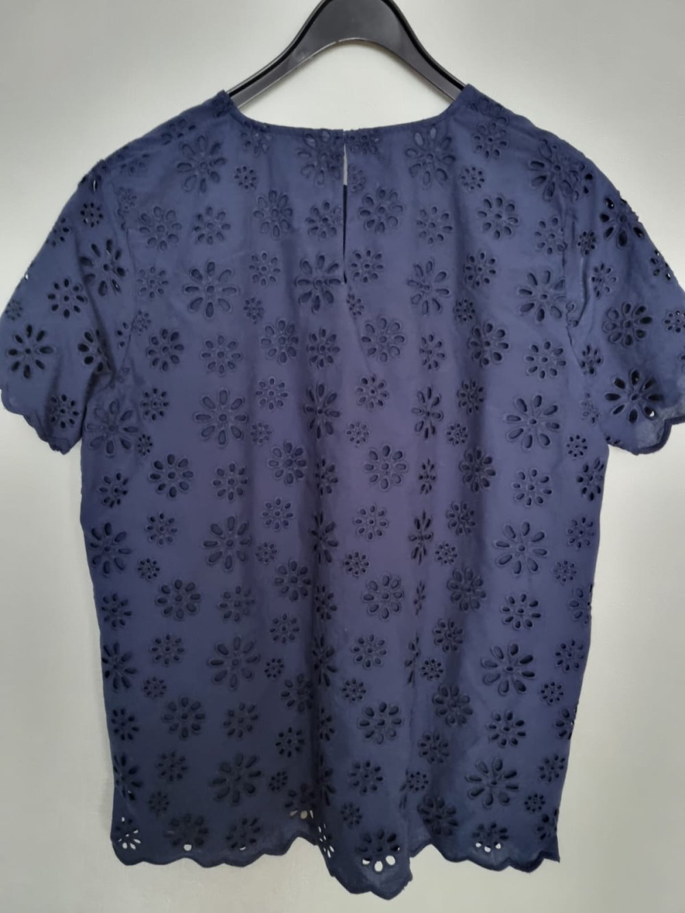 Dunkelblaue Sommerbluse mit blumiger Lochstickerei