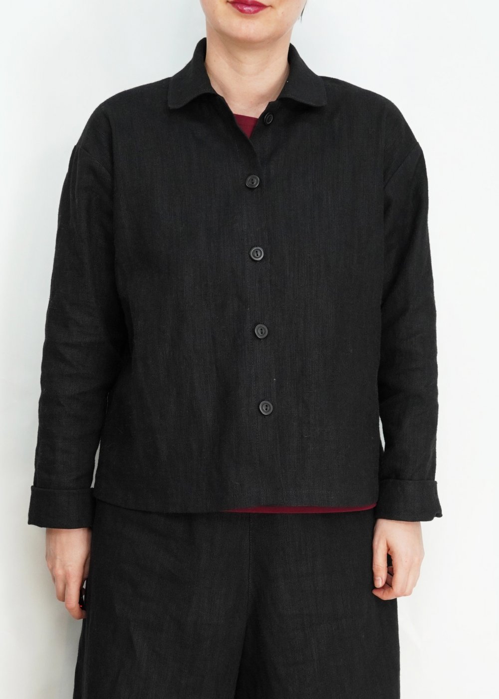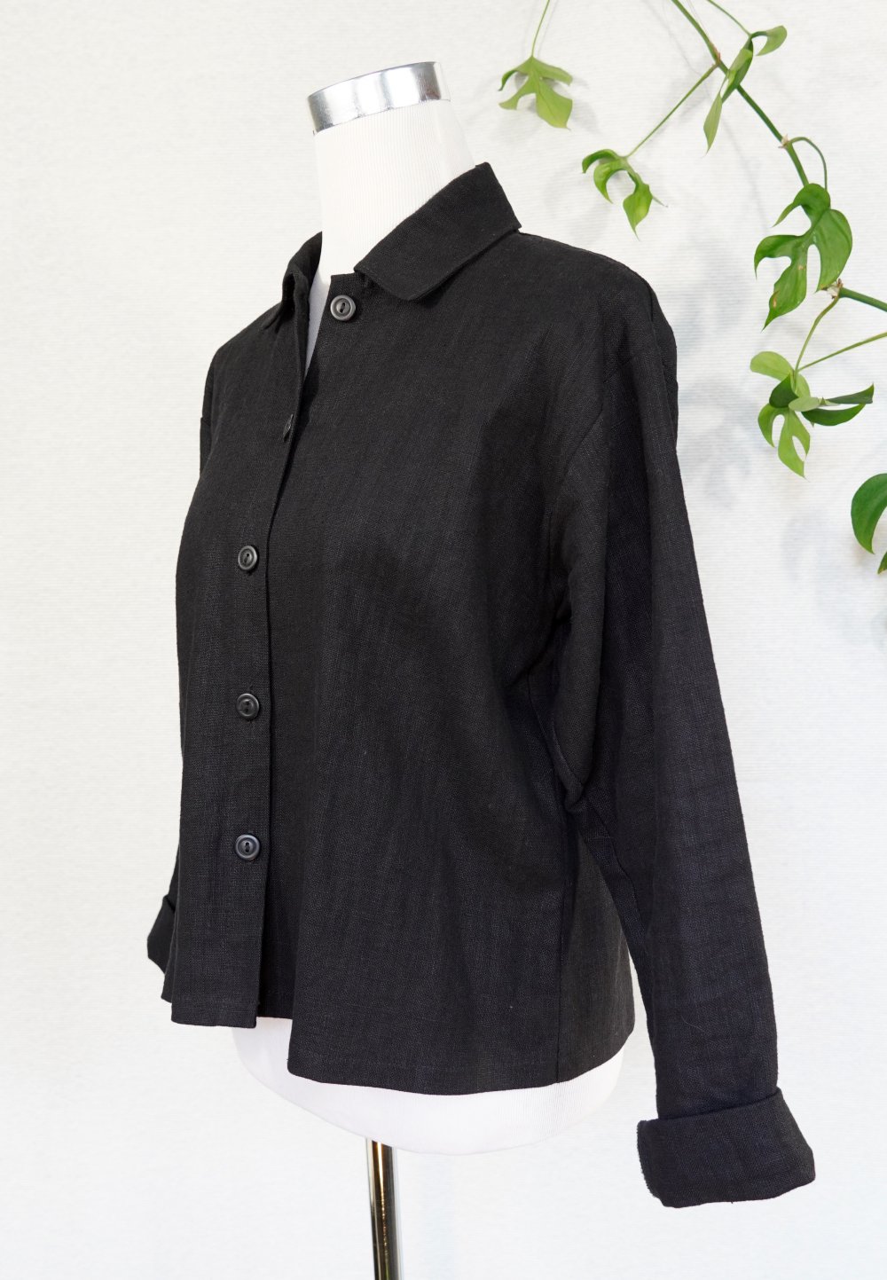 Schwarze Jacke Gr. 40-42 Leinenjacke weite Jacke Lagenlook