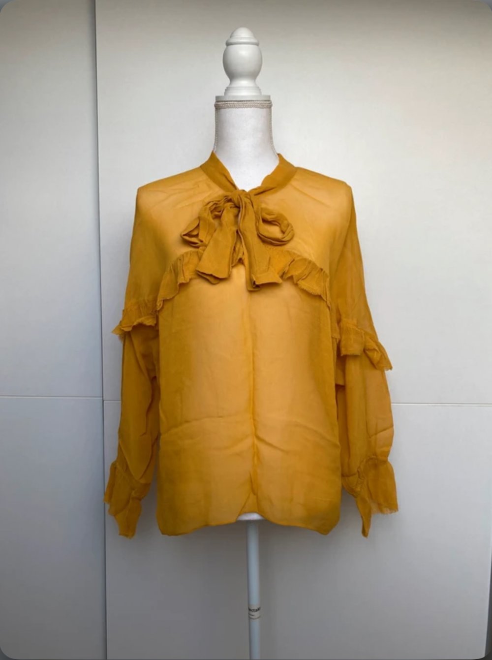 Bluse Tunika Sommer Sonne Schleife Gelb Zitrone Sonne Rüschen Fledermaus Zara
