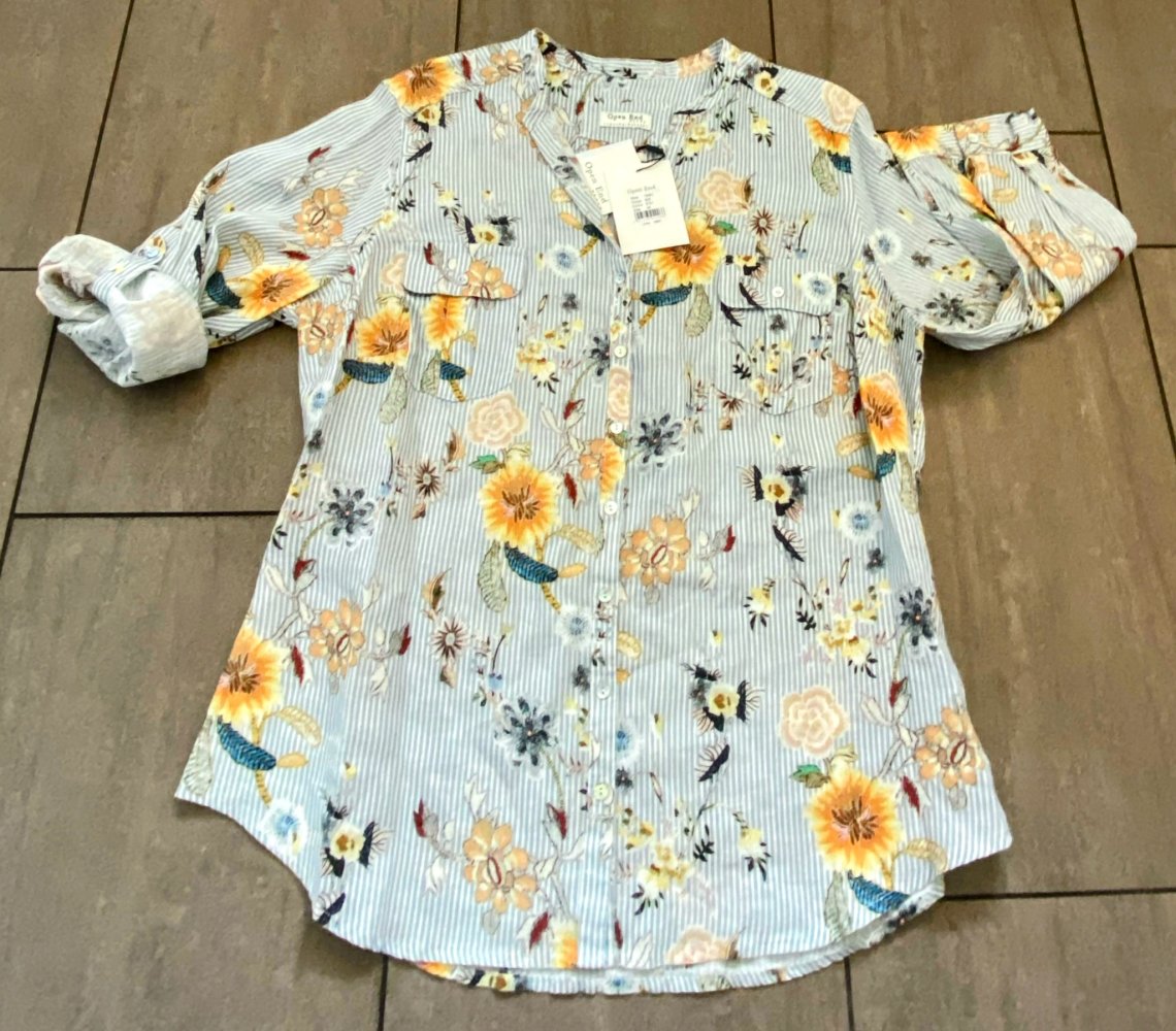 NEU Damen Bluse Leinen Hemd Gr.44 bunt geblümt Open End