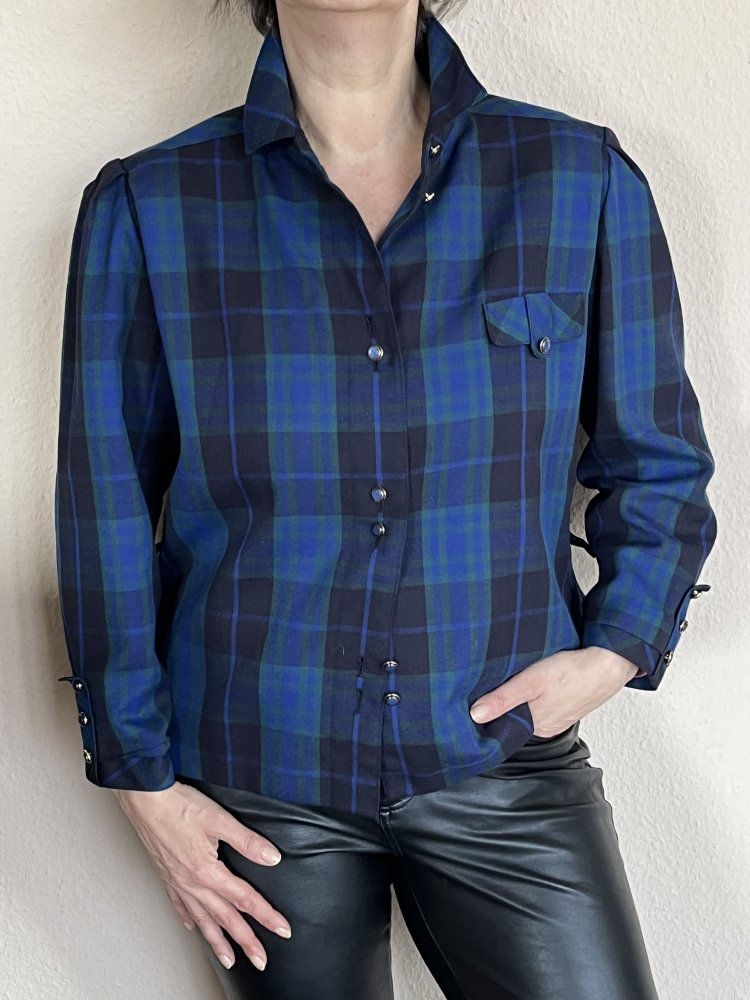 Delmond Vintage Hemdblusen Jacke Gr.42 kariert mit Doppelbuttons tolles sattes Blau