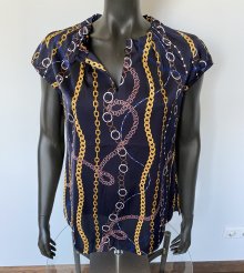 Comma, Bluse, Satin, Raffung, gemustert, blau/ gold, Gr.38