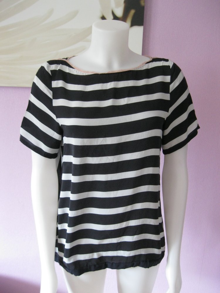 Bluse Shirt kurzärmlig gestreift Schwarz/Weiß 36