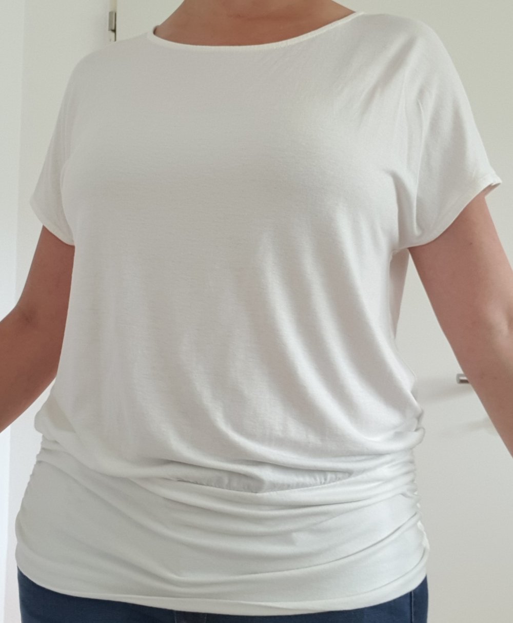 weißes lockeres Shirt mit Raffung am Saum, Naht am Rücken