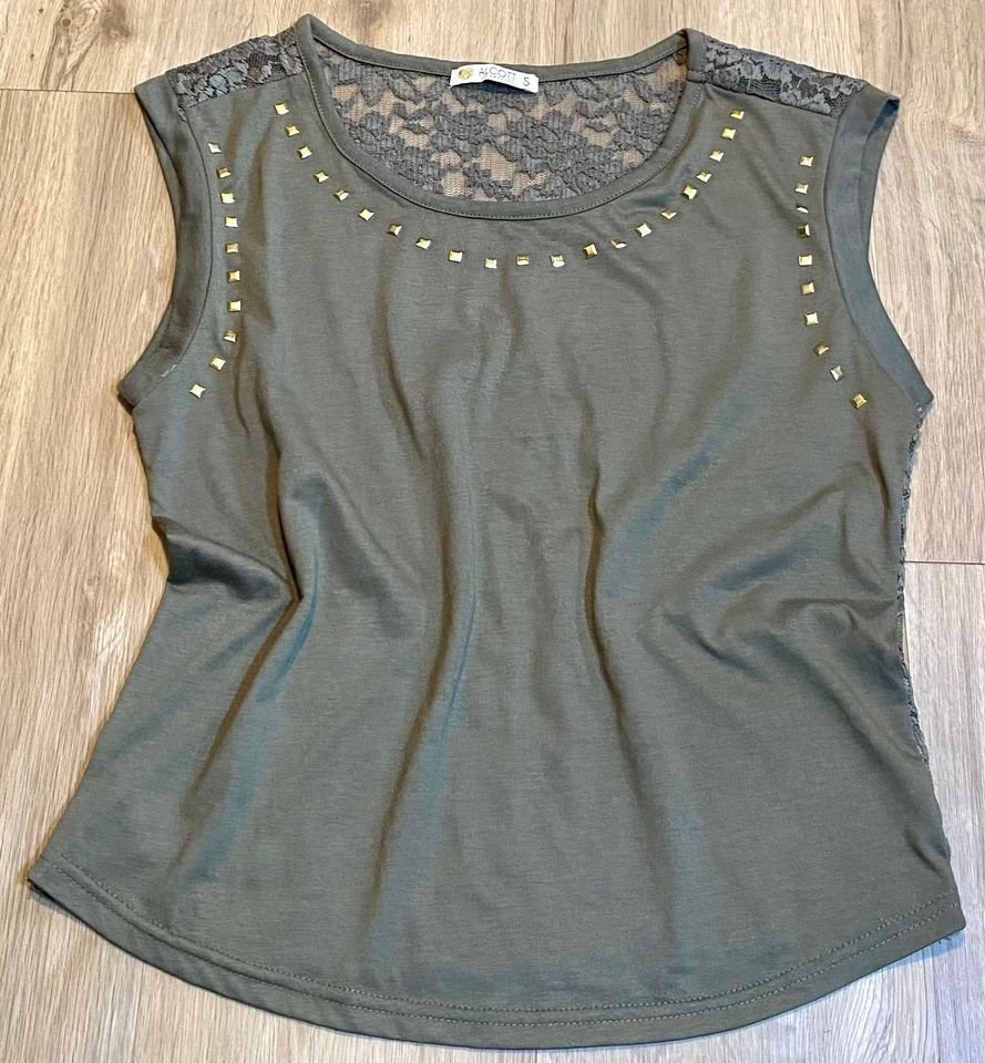 Damen Shirt Sommer Bluse mit Spitze Gr.S Oliv Alcott NW