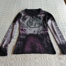 Shirt, Langarmshirt, Gr. 34 bzw. ca. Gr. XS, schwarz/bunt/silber