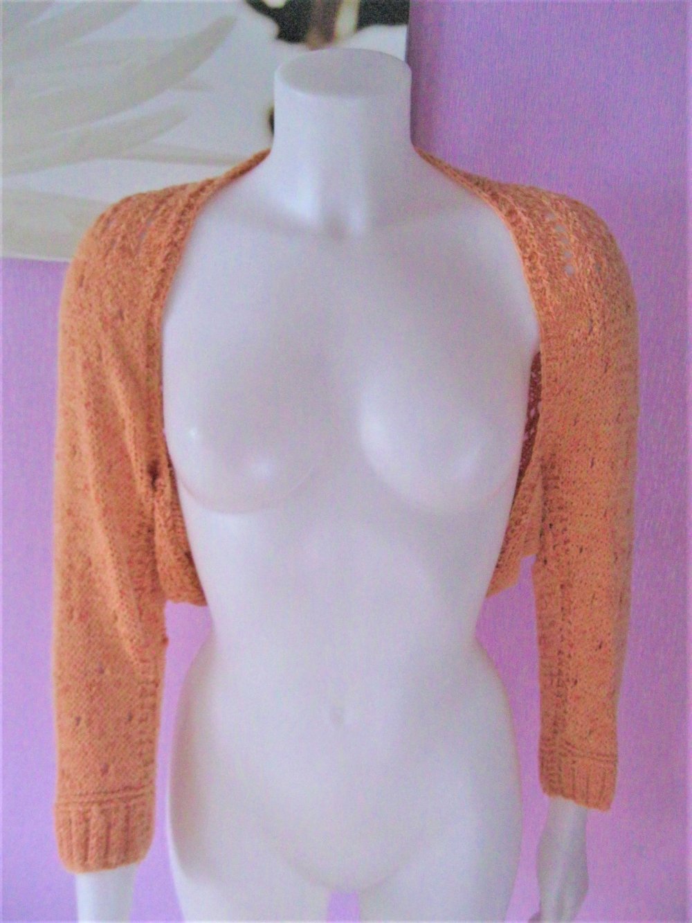 NEU Strick Bolero Handmade Lochmuster Viskose Aprikose Oversize