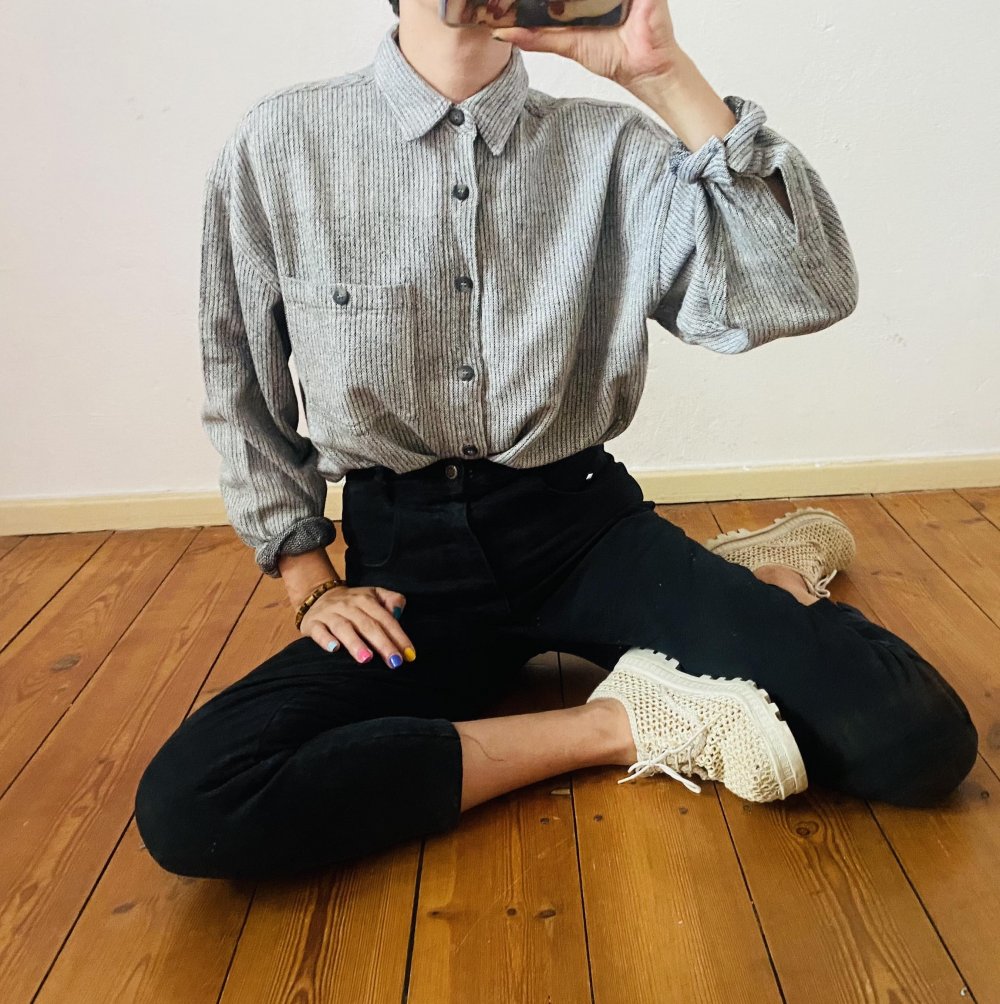 Schickes Oversize Shirt aus der 90er mit einem lässigen Schnitt und einer Knopfleiste. Gefühlte Größe L, perfekt zum Oversize tragen. Vintage Einzelstück in tollem Zustand. Auf den Fotos getragen von mir mit Größe 36/178cm groß.