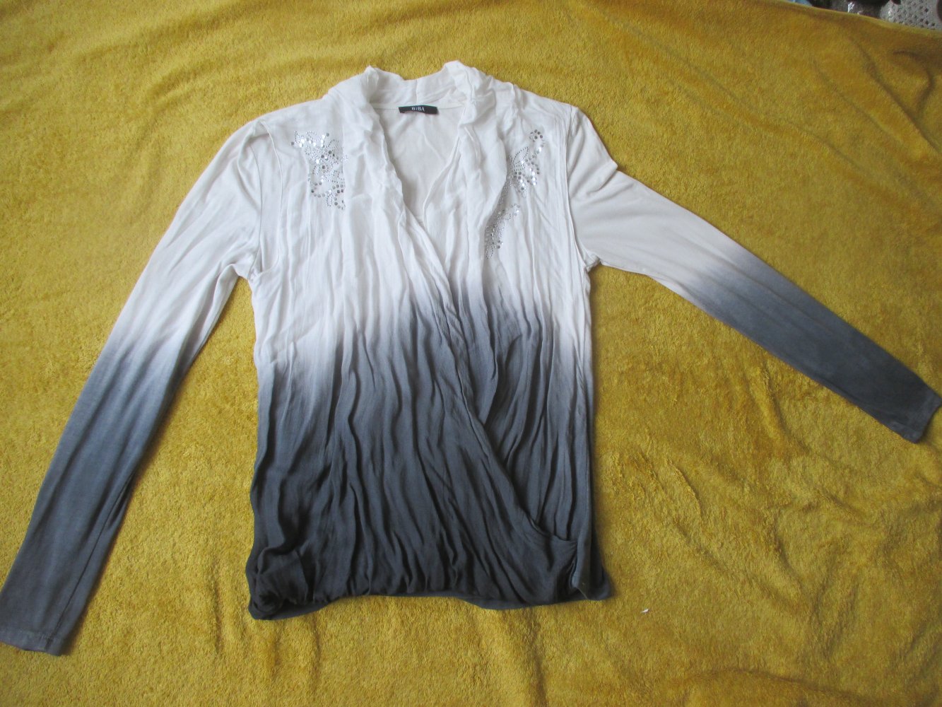 NEU * Silber Nieten * Flower- Power * Blumen * Blüten- Ranken * Blouson * Longsleeve * Langarm * T- SHIRT "BIBA by ESCADA" Gr. 36- 38/ S, 1 * weiß * grau * Ombre *