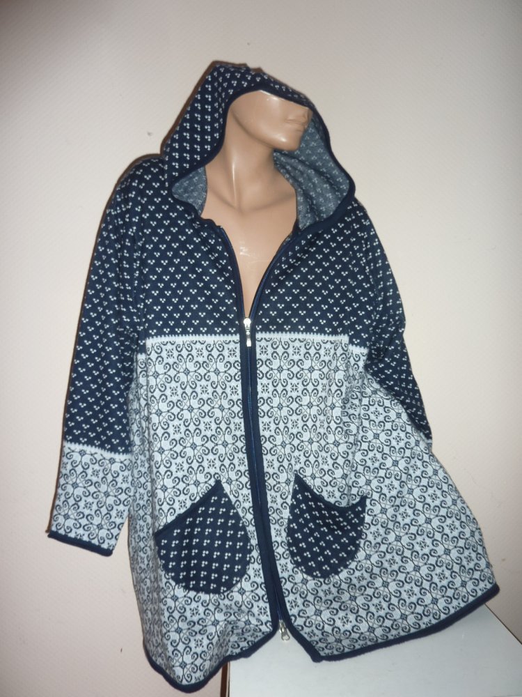 Strickjacke Cardigan 46 48 50 XXL Kapuze lang Strick blau weiß Kimmy Brust 68 cm mit Baumwolle